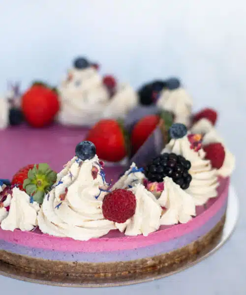 Our entire range of cakes are egg-free! We’re a 100% vegan company which means we don’t use any animal products, including eggs. Our range is also gluten-free, vegan, refiled sugar free and paleo friendly. We’ve spent years perfecting our recipes, and our cakes taste as amazing as they look! (Just read our reviews on our product pages).